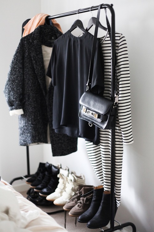 Kjøpte ett garderobestativ på Skeidar, ble plass til både sko, vesker, klær og annet tilbehør.