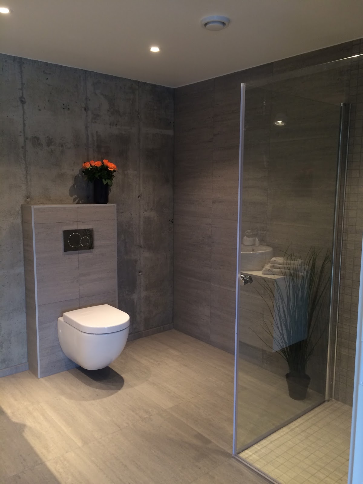 Marlene Rasmussen valgte mikrosement på badet. Popham designflisene er det selvsagt valgt egne fliser på badet. Se mer av Moderne Bad ved å logge inn på Facebook.